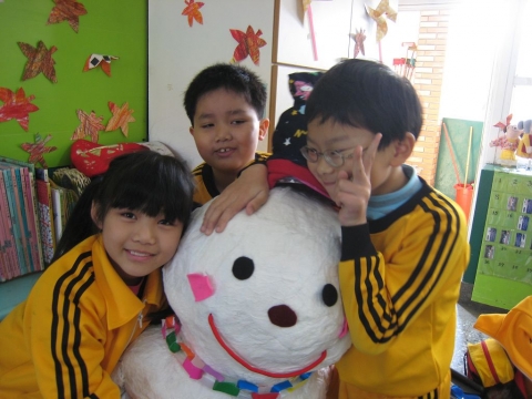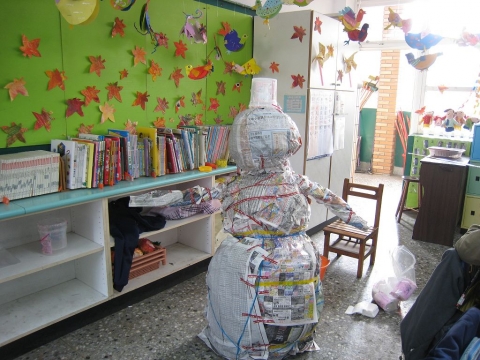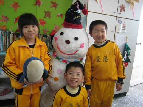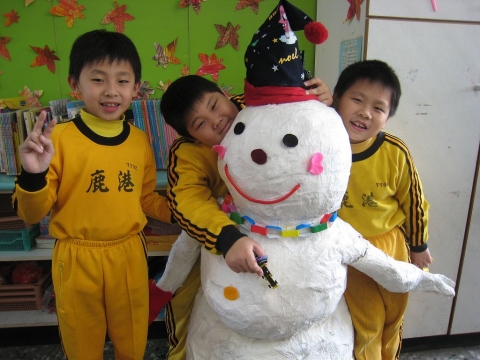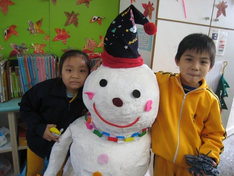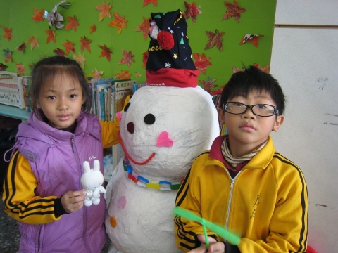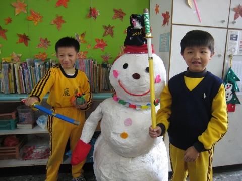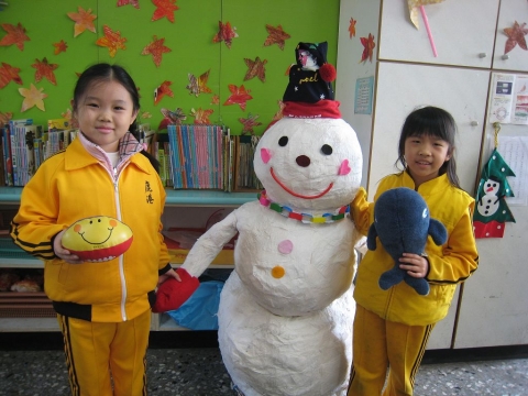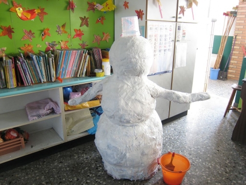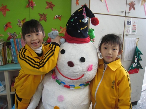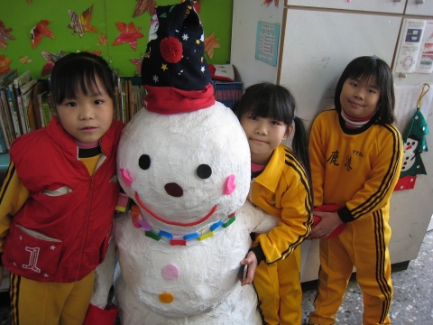 報紙雪人是最受二庚小朋友喜愛的超級大寶貝